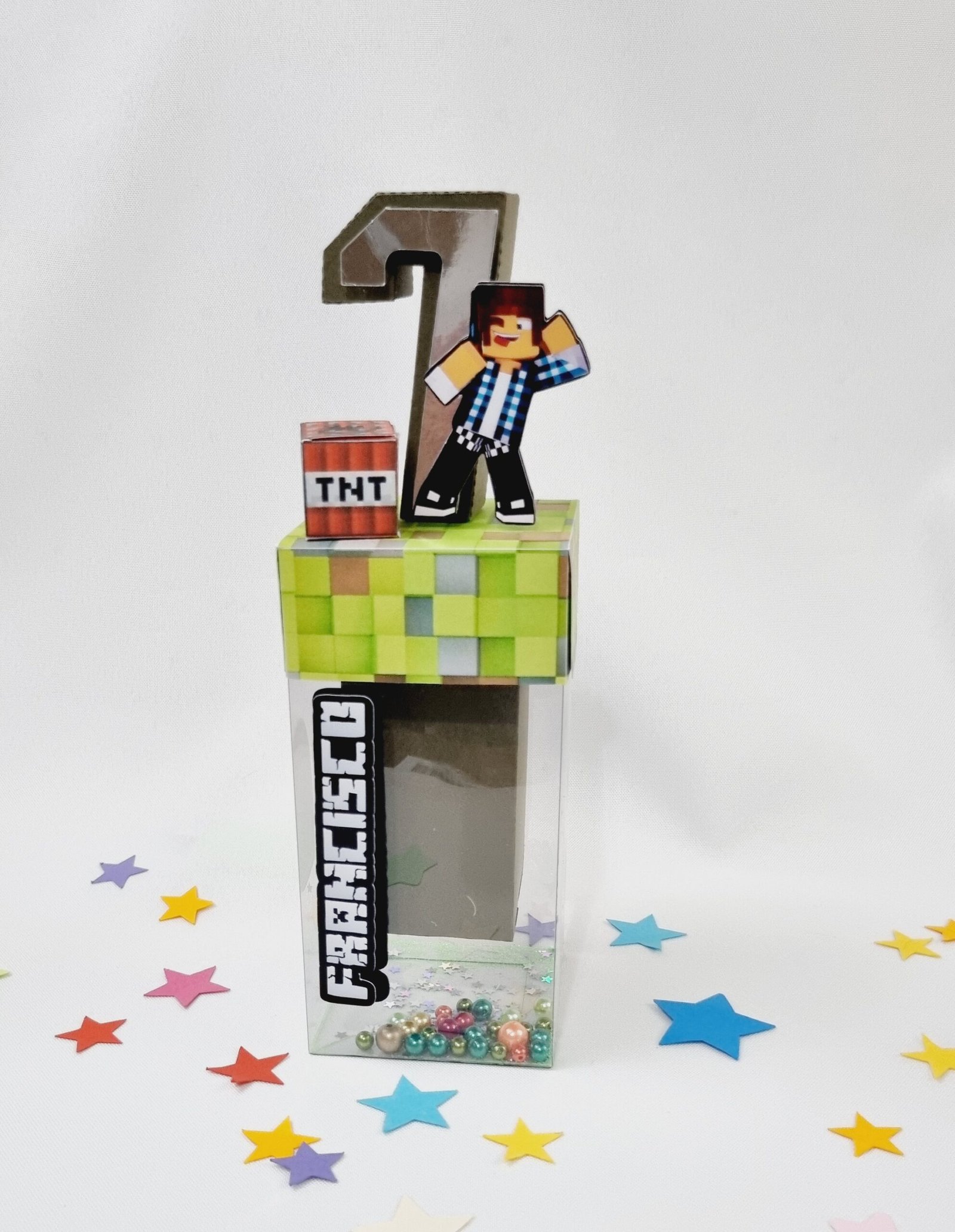 - Internamente (aqui você colocará os mimos): 7,5cm de altura X 4,5cm de largura X 4,5 de profundidade.