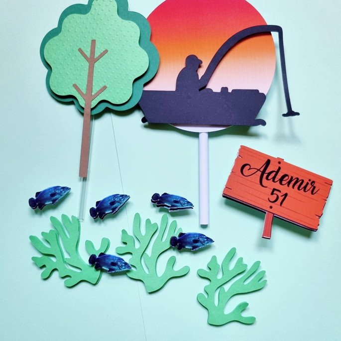 Topo de Bolo Pescaria Luxo